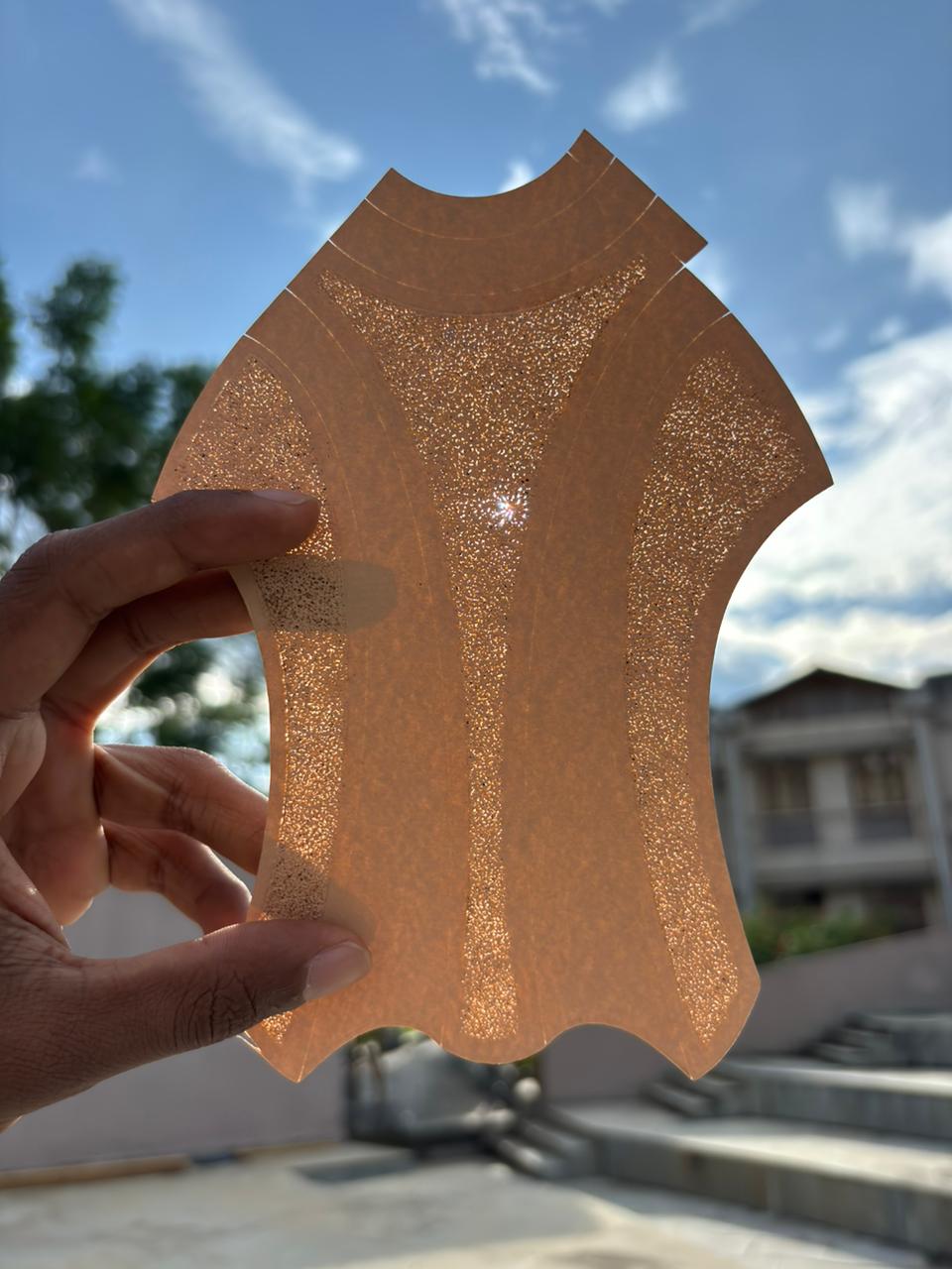 Baari is a sculptural lamp created from a memory of light and water. Its layered form lets light breathe through, soft and quiet—like sunlight slipping through a courtyard. Made by playing with paper, Baari is made to brighten a room and create a moment of stillness.