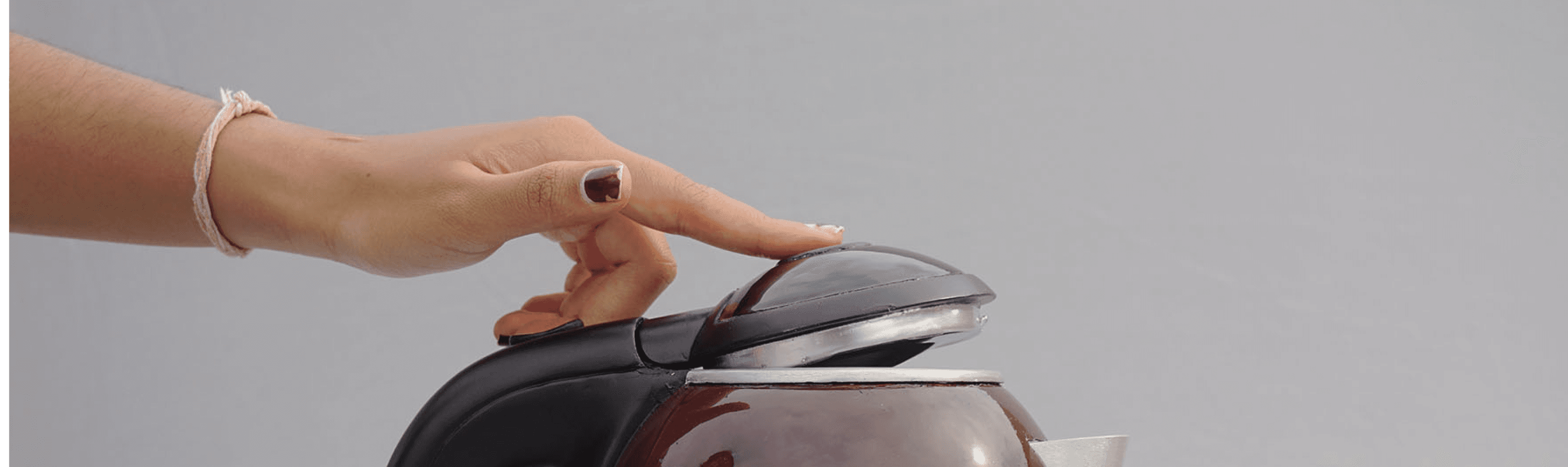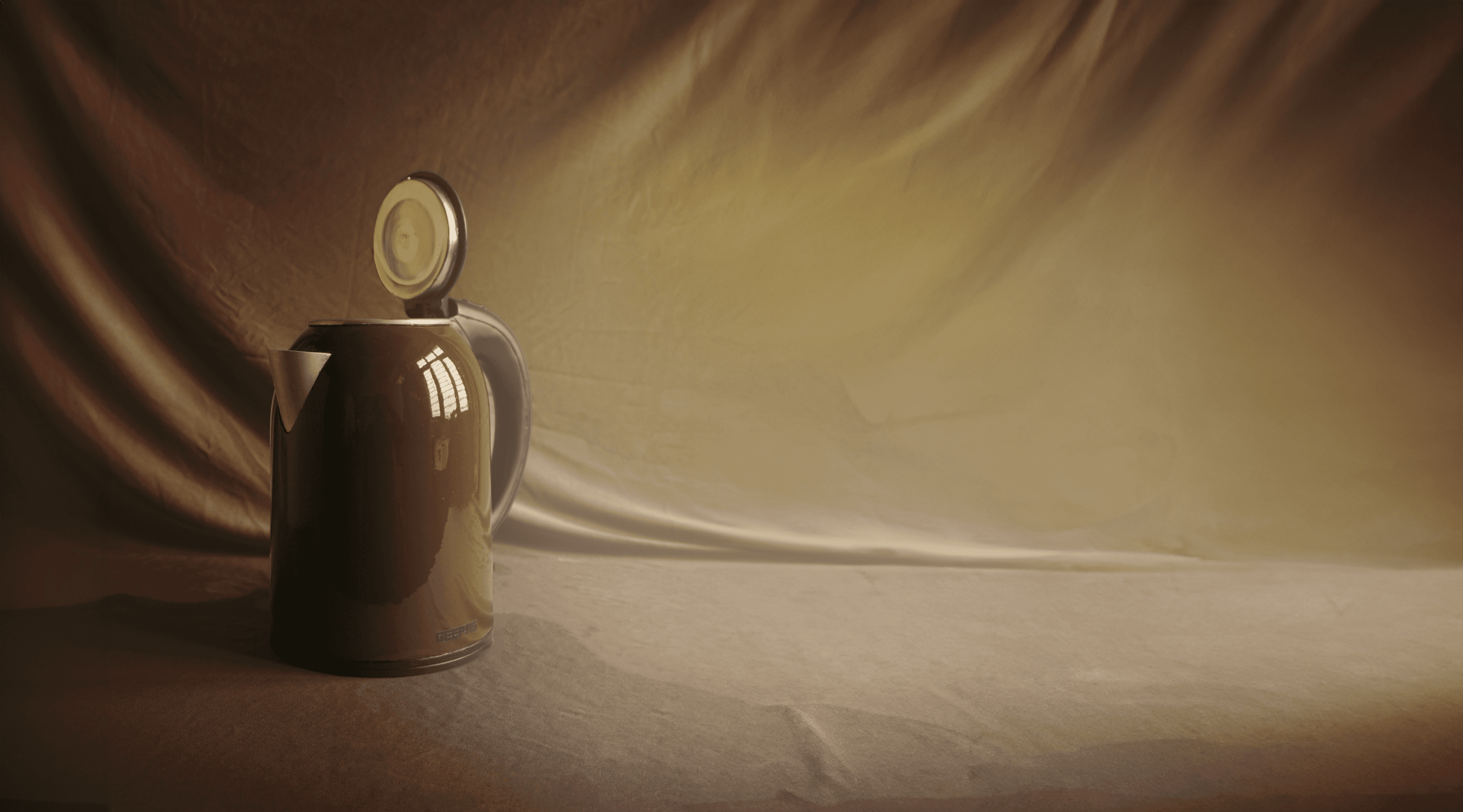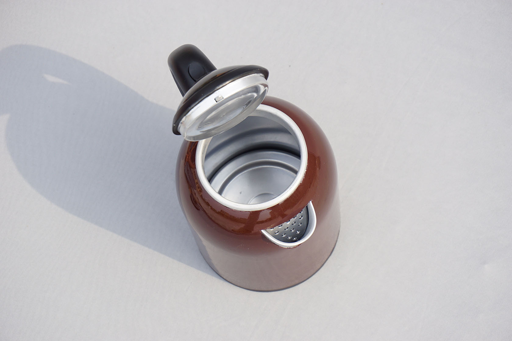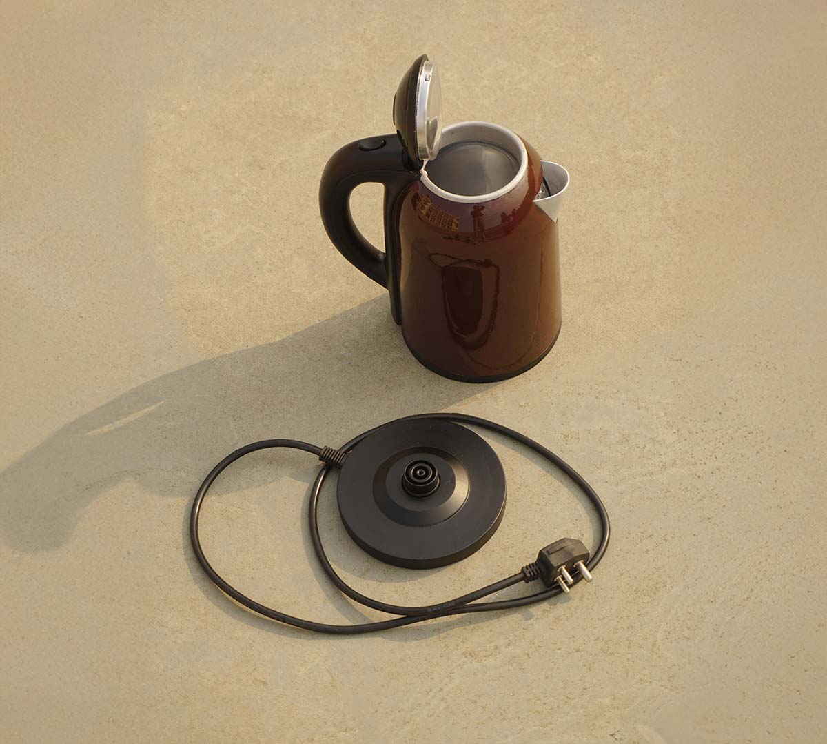 with precision, capturing its stainless-steel body, 1.7L capacity, and striking