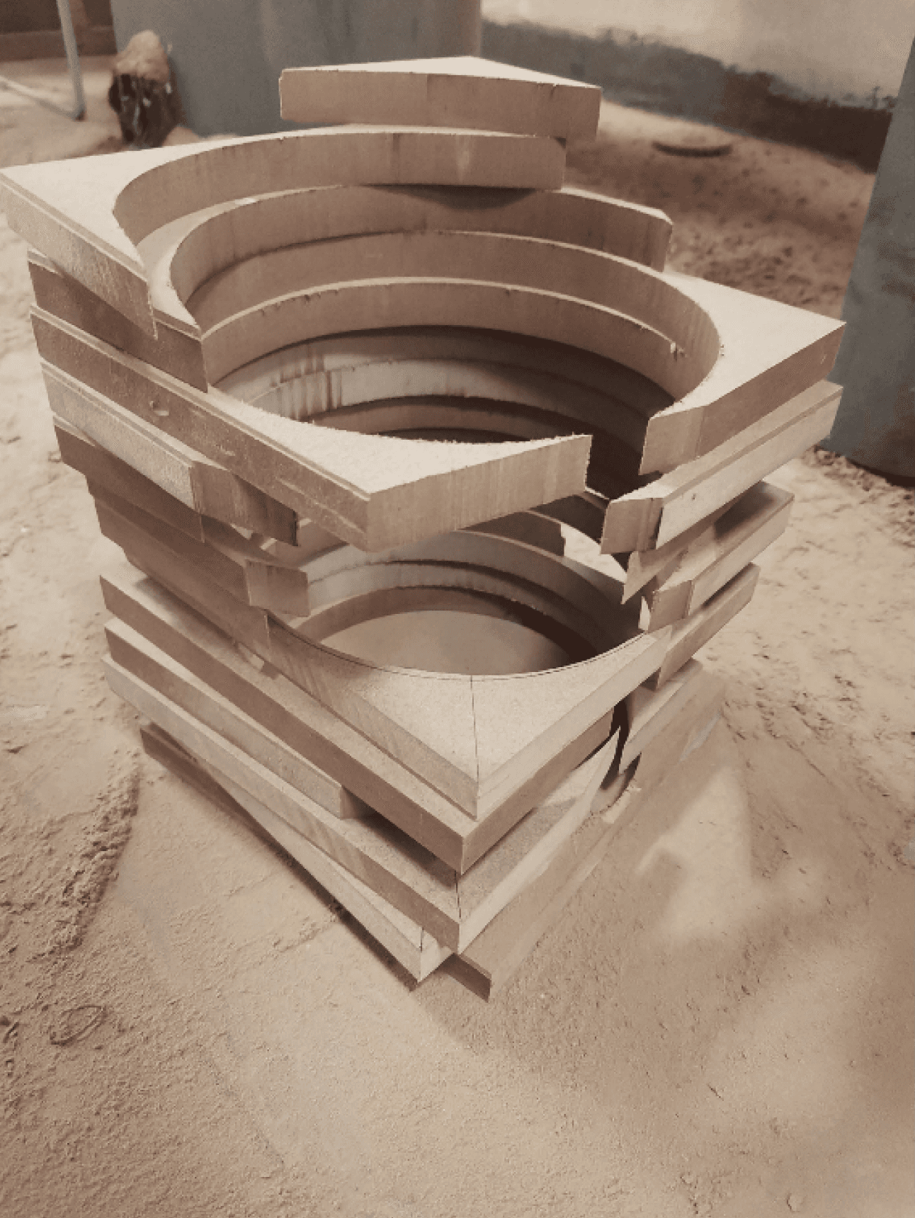 Later the material was subtracted using an angle grinder.