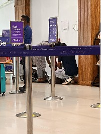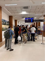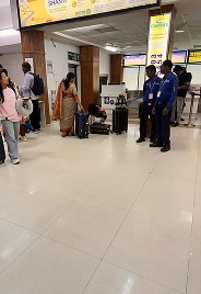People being stopped from entering the Security check line because of screening issue of some visitor.