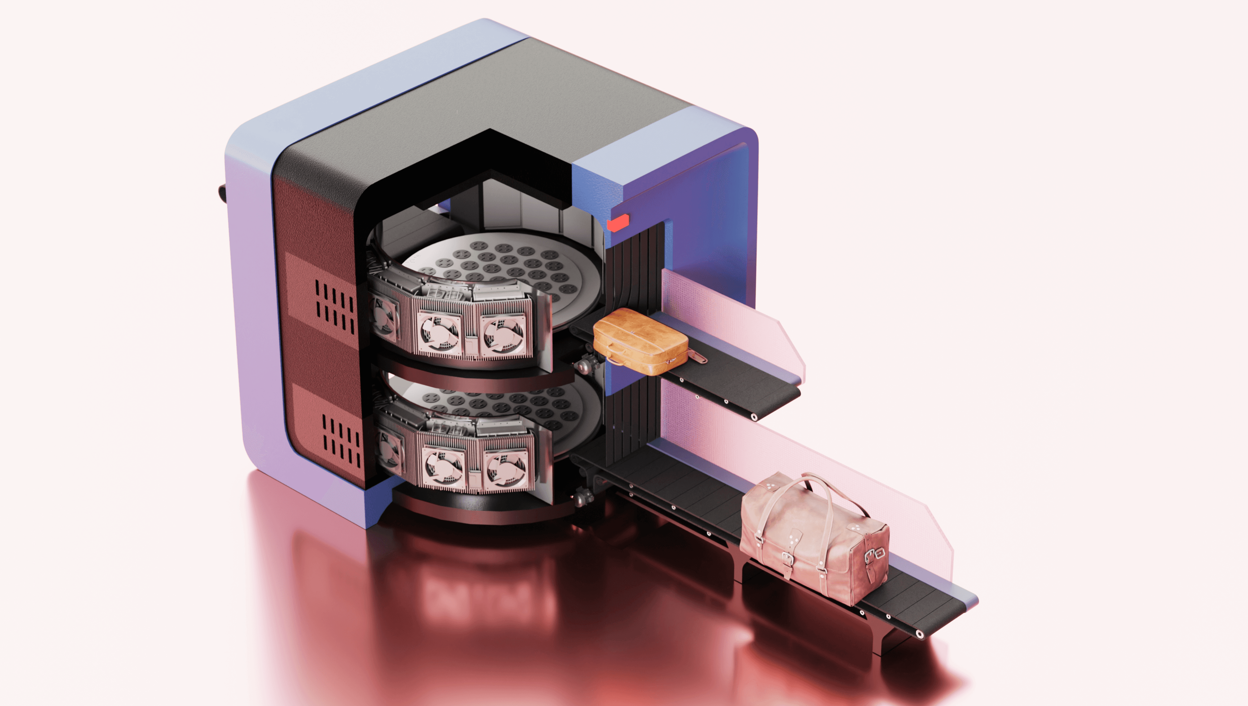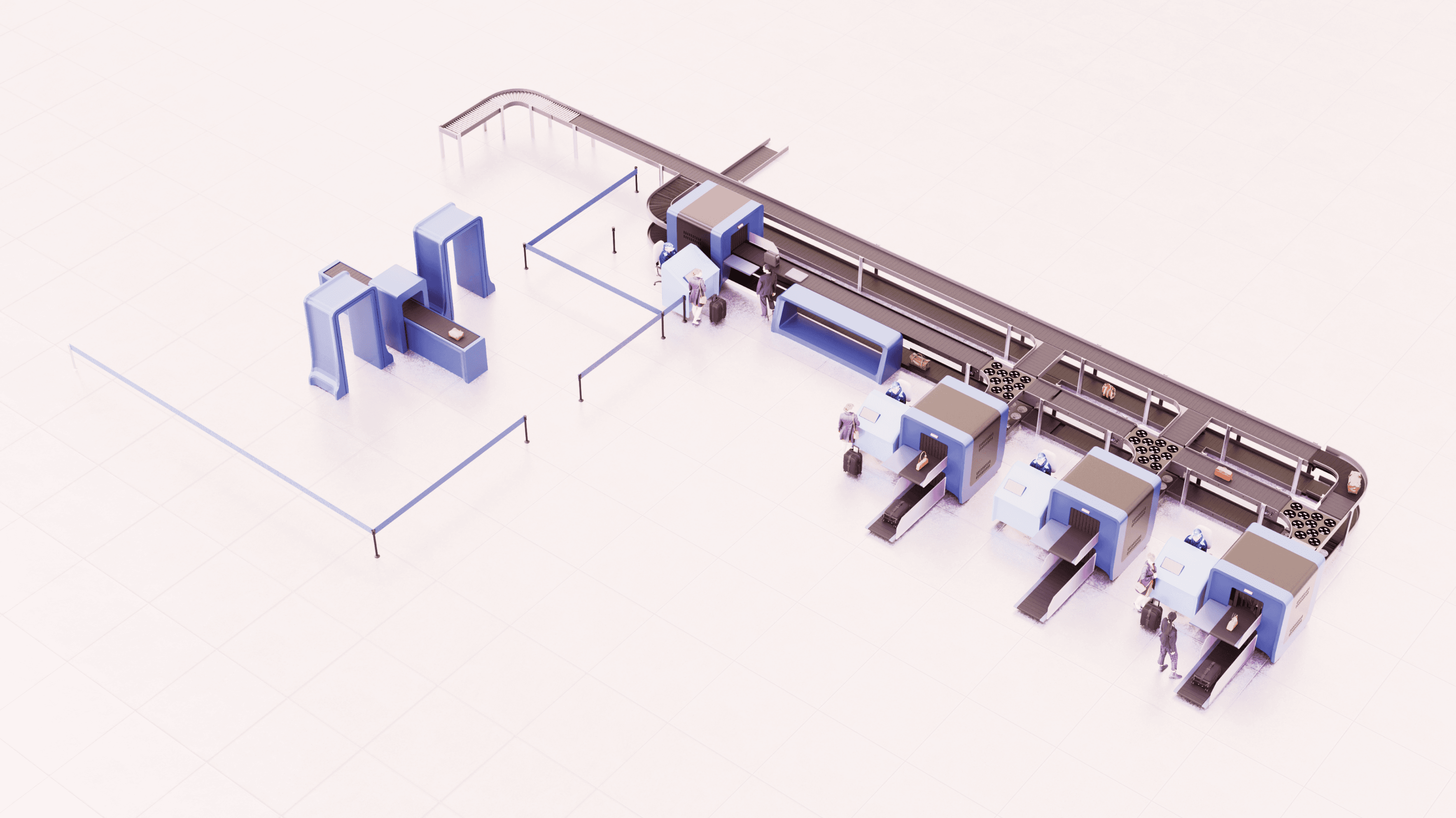 Develop a solution that enables passengers to screen both hand and check-in baggage for security compliance early in the airport process, allowing passengers to rearrange or repack items as needed.